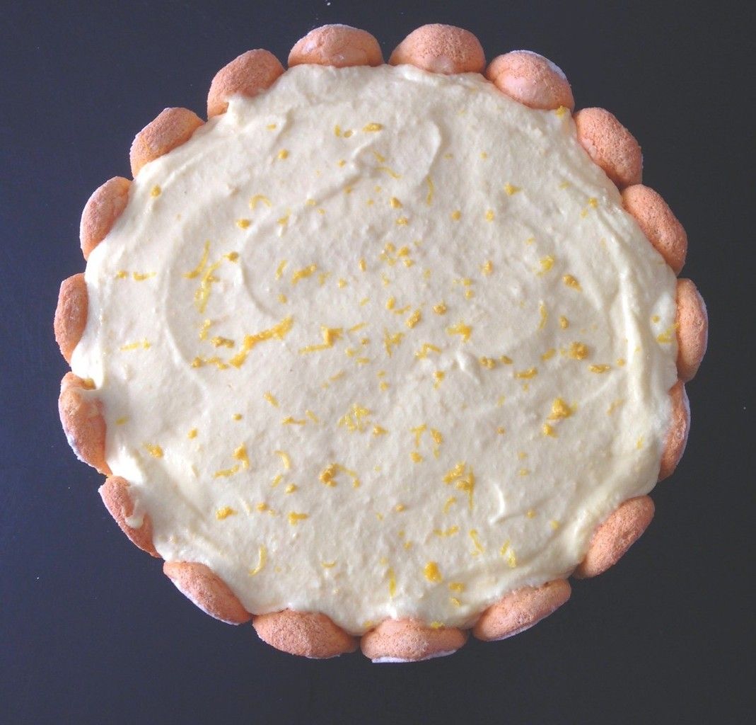 Tremper rapidement les biscuits dans le mélange jus de citron-limoncello et tapisser un moule à charnière. D'abord les côtés puis ensuite le fond (j'ai coupé en 2 les biscuits pour le contour).