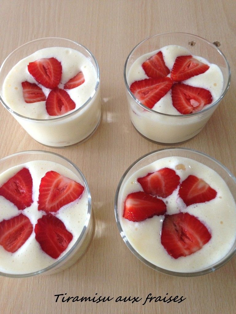 Tremper un biscuit coupé en 2 et le déposer dans une verrine. Verser de la crème au mascarpone puis des morceaux de fraises.